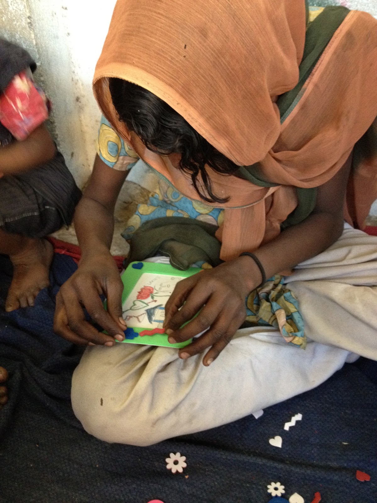 The forty copies I’d asked for weren’t going to be enough. We’d distributed twenty-one copies to the older kids the day before, but Mamta—who was old enough for those older-kids’ sessions, but still young enough for this younger-kid session—hadn’t been there. Now, as I counted the heads seated on the dusty blanket spread across the floor, I saw we’d be five or six copies short. No matter—some of these children were too small to read anyway.