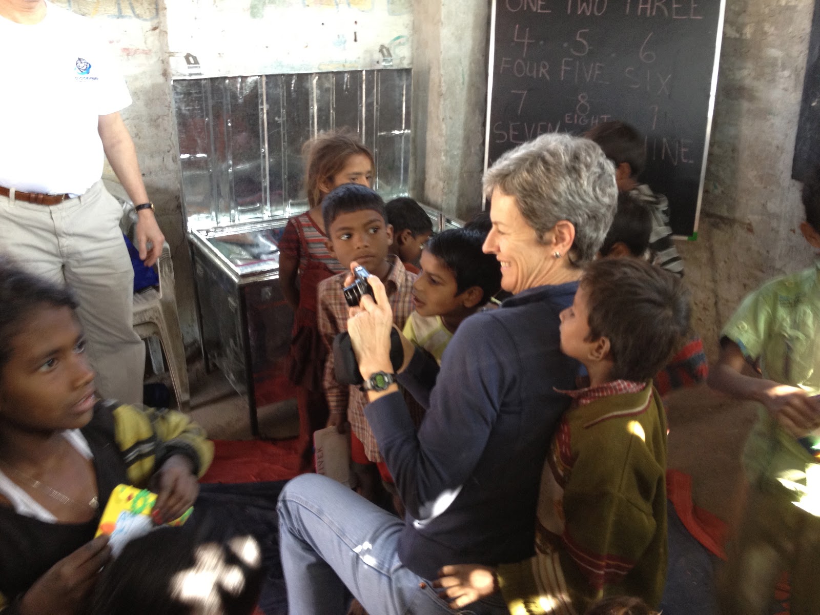 And Nutan. One of my favorite people I’ve ever met. Up at 5:00 every morning to clean and prepare meals for her family and two American students for whom she’s serving as a host family. Picks the volunteers up every morning in her sari and faux-leather jacket. Answers our questions on the way to the slum, then teaches with us until lunch. Lunch with us; answers more of our questions; teaches with us in the afternoon. Sometimes dinner with us. Home to care for her daughter and prepare more meals for her household. Between it all, makes contacts at the bazaar so her students can have better access to the job market. She does this without realizing how extraordinary she is. What makes Nutan unique is that she neither appreciates herself nor has any need to appreciate herself. When I called Nutan “Superwoman” she liked the compliment, but neither expected nor needed it.