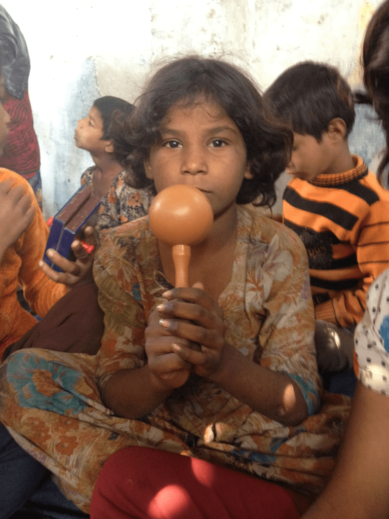 Nutan knows that Mamta is one of my favorites. Mamta’s face is expressive but matter-of-fact—she can warm your heart with a smile or instill guilt with a scowl. She’s smart, assertive, and charismatic. She is also mercurial. Sometimes she needs discipline, as when we were playing “music” in a small circle and Mamta kept taking other kids’ instruments. I warned her twice, provoking eye rolls, then confiscated her instrument, provoking a scowl and some nasty-sounding Hindi. I leaned forward, mimicked her scowl, laughed to show gentle mockery, and kept the instrument. That appears to have been the right move, as Mamta and I were friends after that. Mamta would approach me before class to hold hands or slap high-fives, and I liked it when she did. In retrospect I think Mamta wanted affection but didn’t know how to ask for it.