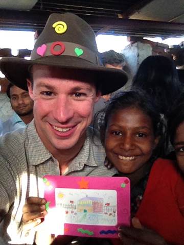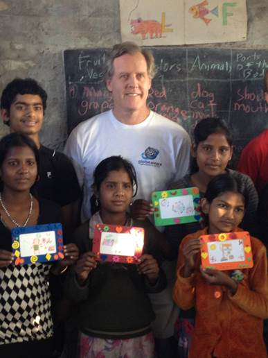 There is a family on this trip with Naveen and me that is presently participating in its sixth Globe Aware vacation. John, Meg, fifteen-year-old David, and David’s friend Nikhil brought a treasure chest of teaching tools with them, including world maps, inflatable globes, magnetic letters, and cards with animal photos and names. Those tools greatly aid our pedagogical efforts.
