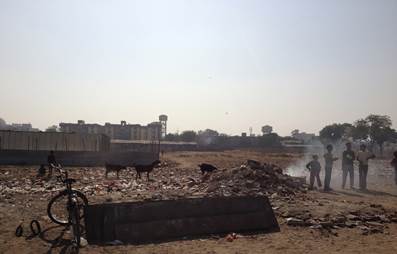 The light blue sky was patched with pink when I sat down on a low brick wall near the hotel to write. Indian music played in the distance; children laughed from around the corner. The air was cool and pleasant. A man drove by on a scooter holding a smartphone to his ear. Another dumped his trash can in the empty lot beside the wall I was sitting on, contributing to the exiting mess of plastic wrappers, disintegrating cloth, and rotting food. This, I have learned, is India.