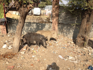 It’s actually the morning of the 30th, and I’m sitting on the patio of my hotel sipping a Kingfisher and wondering how to best to sum up India, or at least Rajasthan, the state where I’ve spent most of my time. Several phrases come to mind. Fascinating mixture of the ancient and modern. The great unwashed. Thatched-hut agriculture meets bustling urbanity. Crowded and dirty. International-jet access to exotic biota. Heedless environmental destruction.