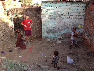 The children gave me much to smile about. They were so excited to attend school, and against the background of the slum their smiles shone like stars against the night sky. Many of them called me by a name Nutan gave me—“Pocket,” because the Hindi word for pocket is either “jeb” or “jev,” I forget which. So on the last day, when we took the young kids to the park, the park was filled with high-pitched calls for “Pocket!” or “Pocketman!” as kids with inflatable balls wanted to throw them with me, kids on swings wanted me to push them, and kids on the slide wanted me to watch. They did not know, and will never know, what a gift they gave me by making me a part of that joy.