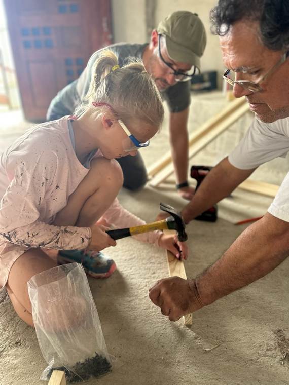 My pants are still covered with sawdust and as we drink coffee I think about what we have accomplished here. Of course building benches with an eight- and six-year old is not the most efficient way to improve the world. If our only goal were to fill the community center with benches, I’m sure Gustavo and Federico could have built more benches in less time if they had done the work themselves instead of guiding our family. Or more to the point, if we had donated the cost of our airfare and trip to this community instead of making the trip ourselves, Gustavo could have used that money to buy a several roomfuls of benches.