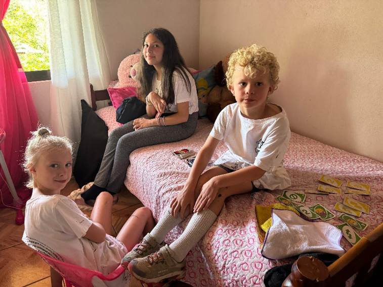 Jose and Carmen have a ten-year-old daughter, Jadeyana (jah-dee-ahn-uh) and our kids are thrilled to see someone near their age. They ask to see her room and she takes them to a small room with a pink bedspread, a pink chair, and pink curtains. A handmade dollhouse – a gift from her Uncle Gustavo – takes up much of the floor space.
