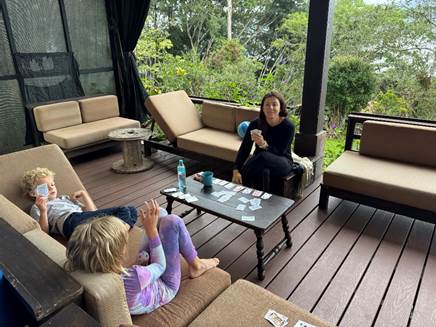 The kids play Uno while the adults retire to the sitting area. Farrah and Jim will later explain that they were able to play despite the language barrier because Jadeyana could say the colors in English, and the Butler kids could say the colors in Spanish. We adults rely heavily on Federico for translation.