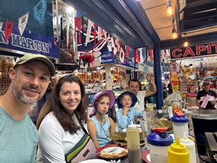 We arrive at the airport and say goodbye to Federico, who we will miss. From there the travel is routine. Busy airports, crowded spaces, long flight, traffic. When we get home there is no time to cook dinner so we sit around the kitchen counter eating a meal delivered by Uber.