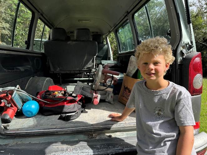 Federico is now loading the van – not the big white one we’ve been using, but an old green Hyundai with a better roof rack. Lumber goes on the roof. Tools and gloves in the back. Jim follows Federico around, insisting on helping with each step toward our departure. I intended to help, but a text from my law partner tells me that we’ve won an important case in the Court of Appeals, so I am happily distracted with the law for a few minutes.