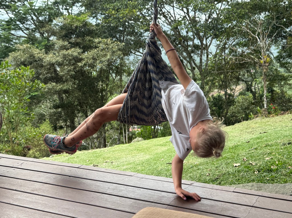 This will be our last full day in Costa Rica, so we do our best to savor the slow morning. We’re on the pleasantly warm porch sipping coffee not long after the sun has come up. The birds call, the clouds drift. When the kids are hungry I cook eggs and Federico slices fruit. I hear Anne tell Federico that she hasn’t prepared a meal in six days and feels good about it. She does ask Federico to show her how to properly slice a mango.